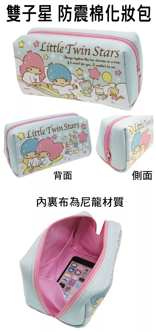 博客來e-coupon 【日本進口正版】雙子星 KIKILALA 防震棉 水藍色 化妝包-收納包-筆袋 三麗鷗